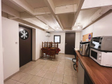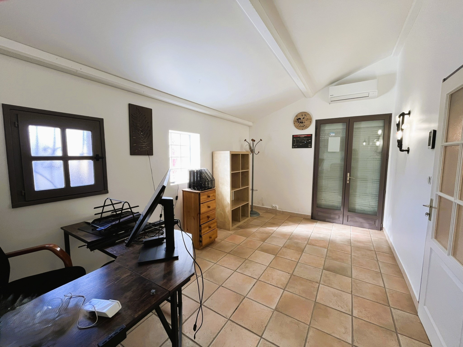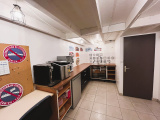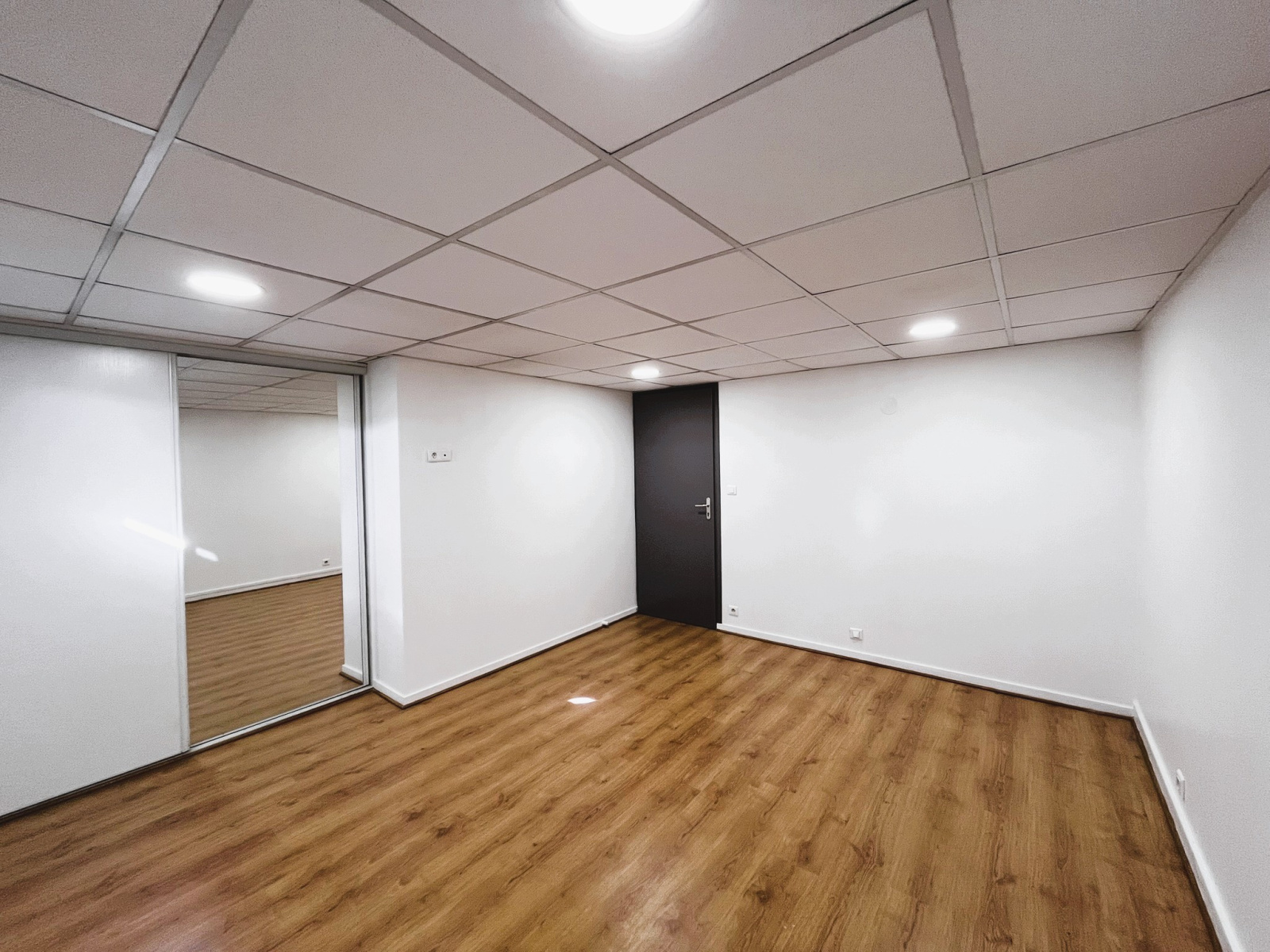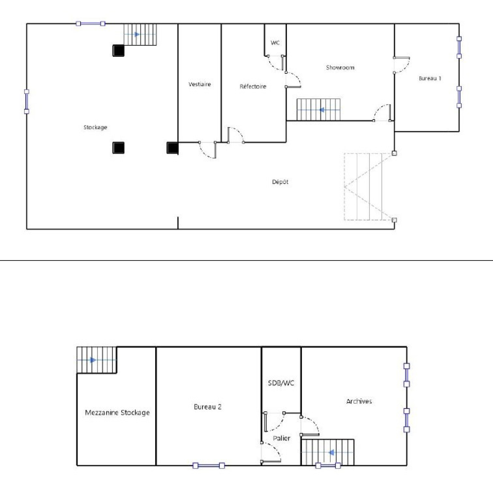 Espace bureaux : au RDC : 1 vestiaire, 1 réfectoire, 1 WC, 1 showroom/bureau, 1 bureau / accueil climatisé ; au R+1 : 1 bureau, 1 salle d’eau avec wc, 1 salle d'archives.