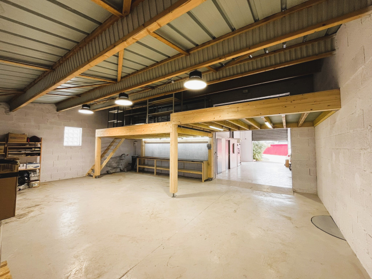Espace entrepôt : dépôt + mezzanine de stockage.
