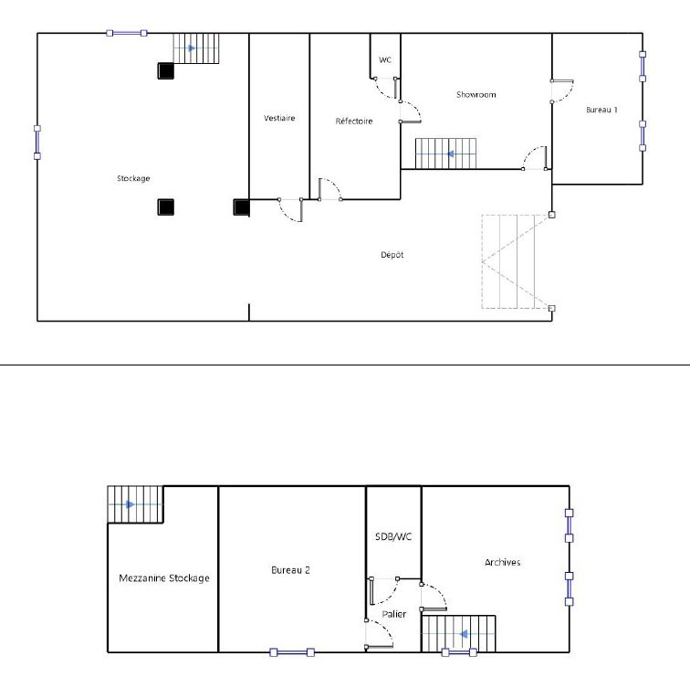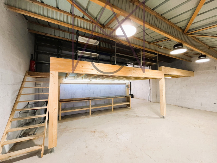 - Local d'activité d'environ 194m², comprenant au RDC 125m² d'entrepôt et 21m² de sanitaire et de vestiaire. En R+1: bureau de 21m² vitré donnant sur l'entrepôt et 27m² de mezzanine de stockage